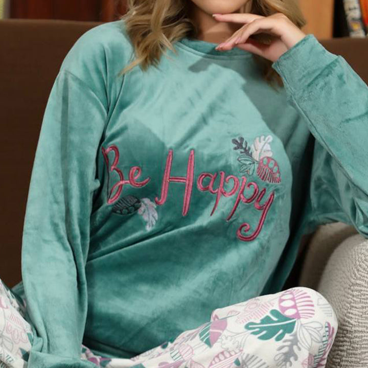 BE HAPPYبيجامة قطيفة بتصميم حوض أنيق وكلمه