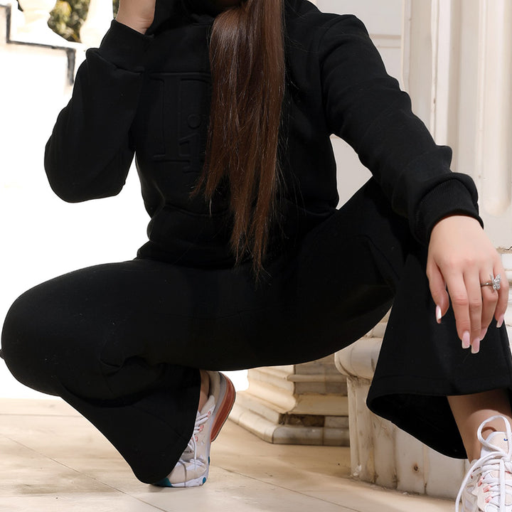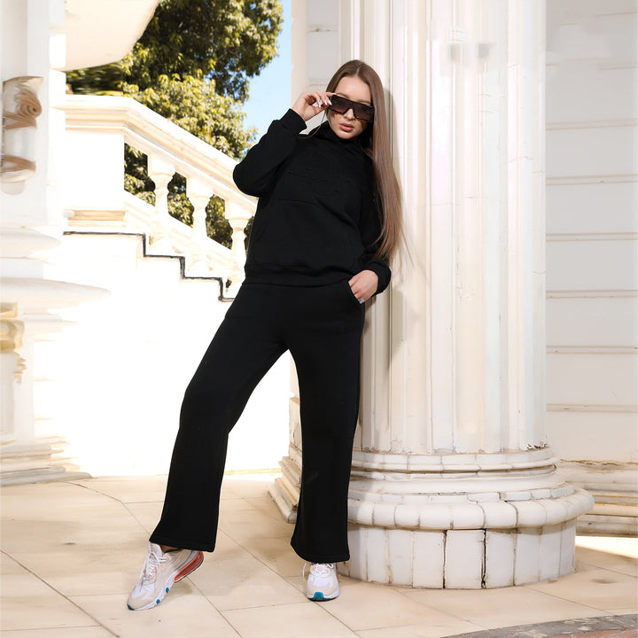 وبنطلون بسيط بتصميم سادة يجمع بين الراحة والعملية.. خامة ناعمة ودافئة تمنحك إطلالة كاجوال