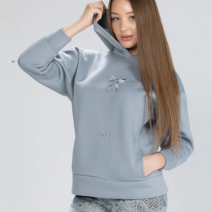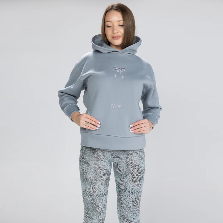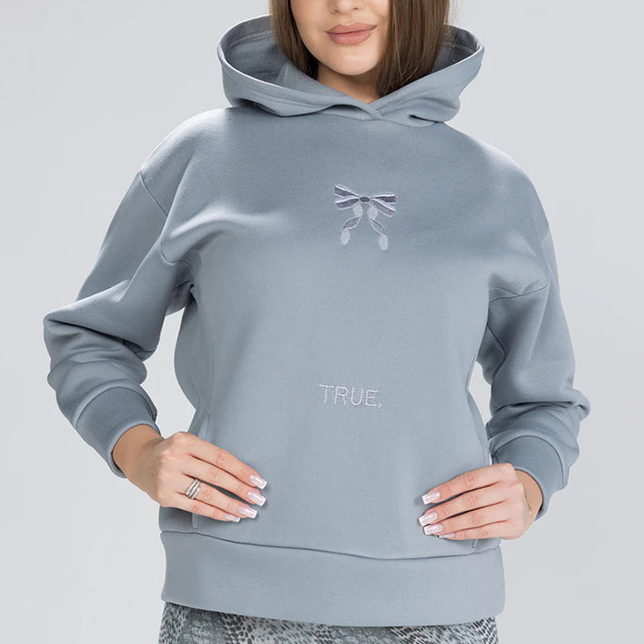 بيجامة ميلتون بكابيشو أنيق وتصميم مزين بفيونكة رقيقة وعبارة *TRUE* العصرية.. خامة ناعمة ومريحة تمنحك إطلالة كيوت تجمع بين الأناقة والراحة في البيت.