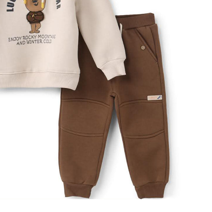 ترينج أولادي أطفالي من قماش الميلتون الناعم، مزود بكابيشو عملي وتصميم مطبوع دب لطيف.. يمنح طفلك إطلالة مريحة ومرحة تجمع بين الدفء والستايل العصري.