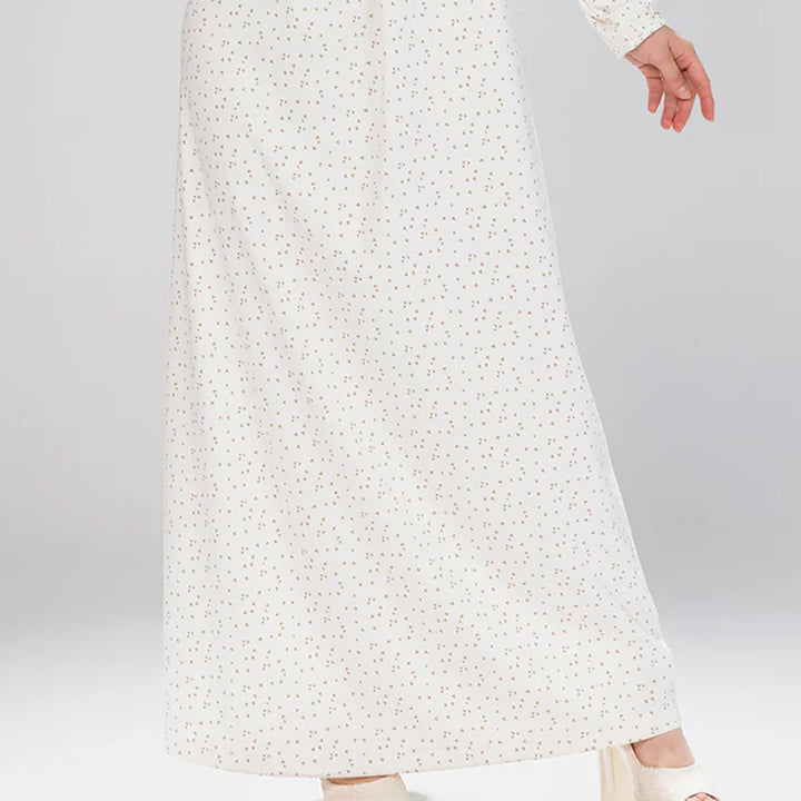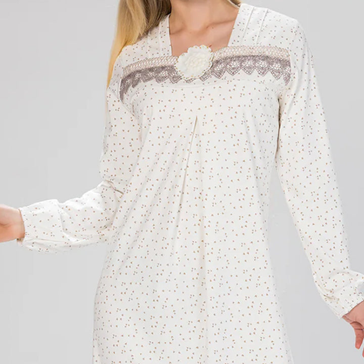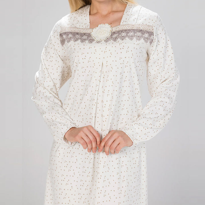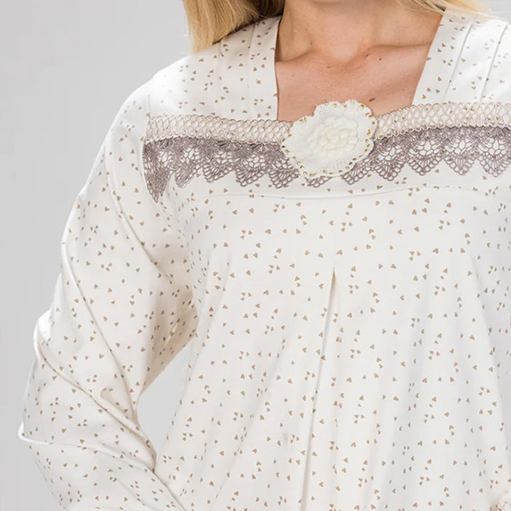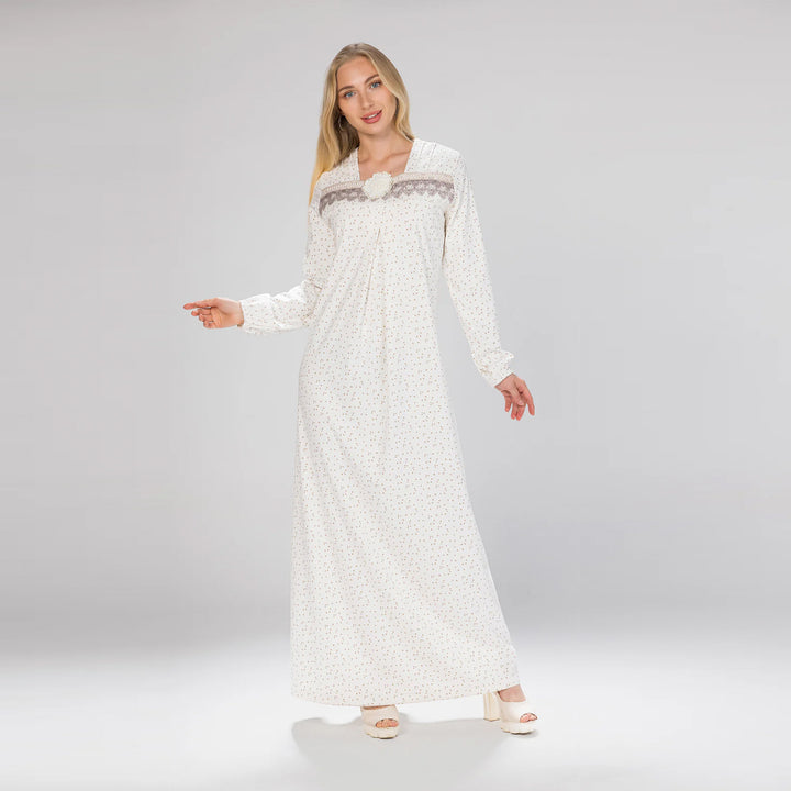 جلباب بتصميم أنيق مطبوع بقلوب رقيقة، مزين بتفصيلة جوبير على الصدر مع وردة تضيف لمسة أنثوية ناعمة.. خامة مريحة تمنحك إطلالة راقية تجمع بين البساطة والفخامة.