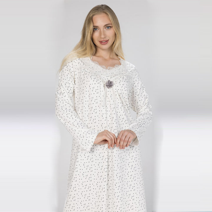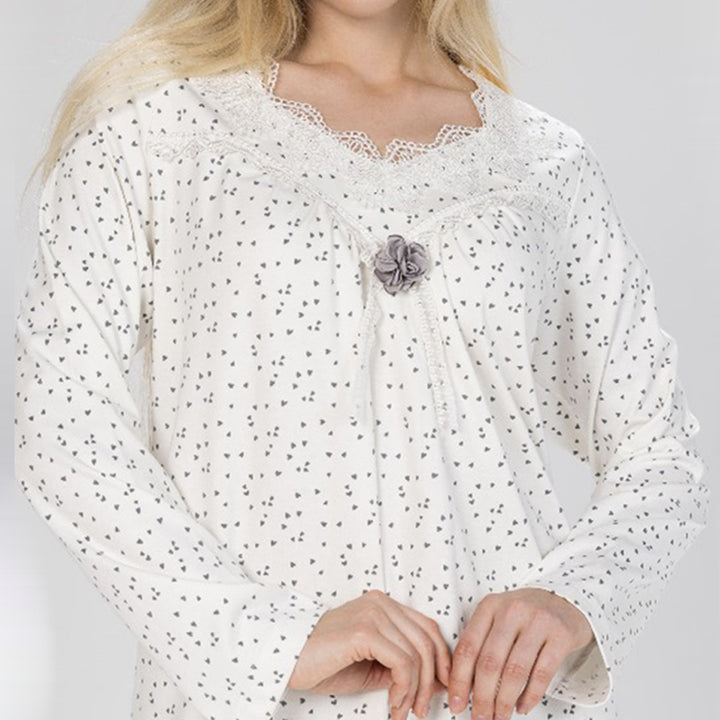 جلباب نسائي من القطن المريح بأكمام طويلة، مزين بطبعة ورد وقلوب مع تطعيم جوبير أنيق على الصدر.