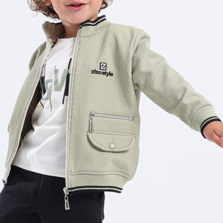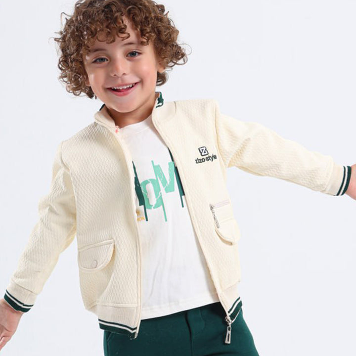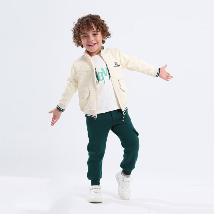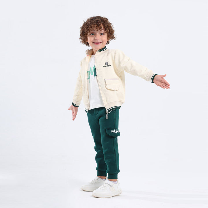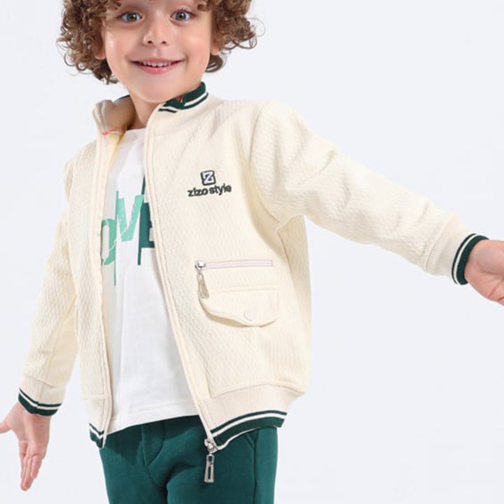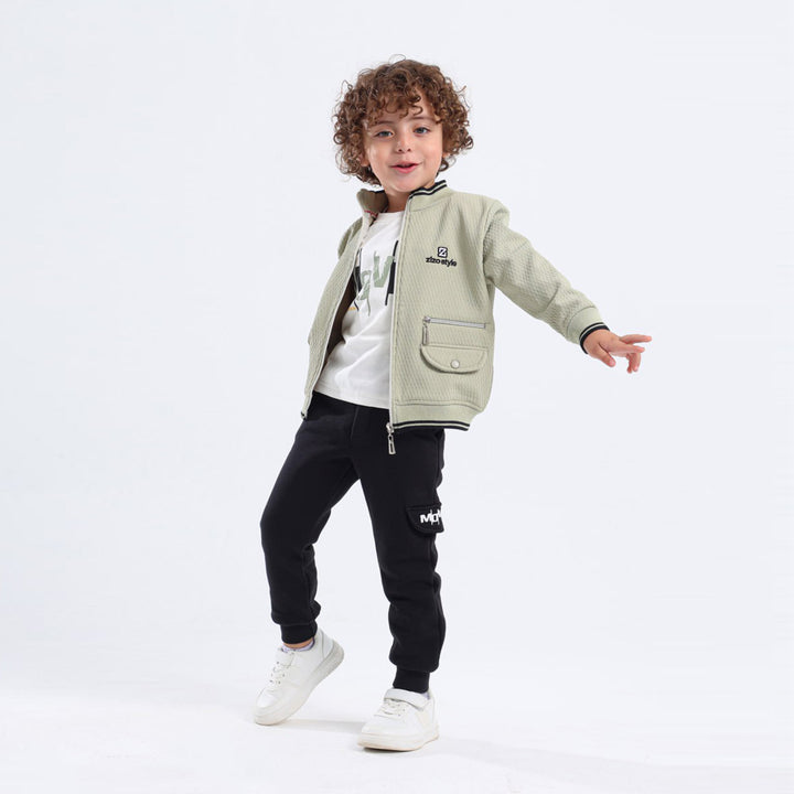 طقم أولادي مكون من 3 قطع، يشمل جاكت قطني بسوستة بتصميم سمبوكسات أنيق وتطريز  Zizo Style،